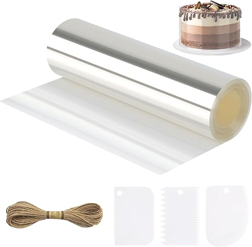 TUFA Rodoide Transparent Patisserie Film 25cm x10m,Rouleaux Rhodoid Patisserie,Colliers à Gâteau Film pour Bordure de Gâteau Réutilisable en Acétate pour Mousse Chocolat Décoration
