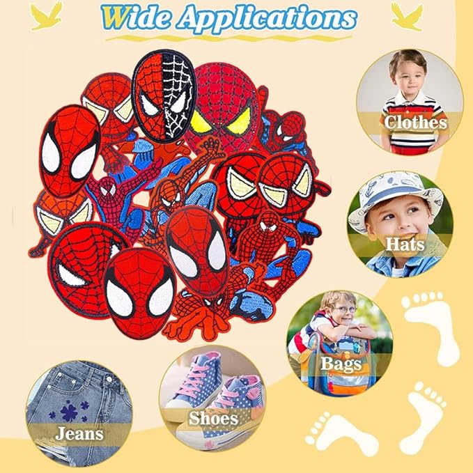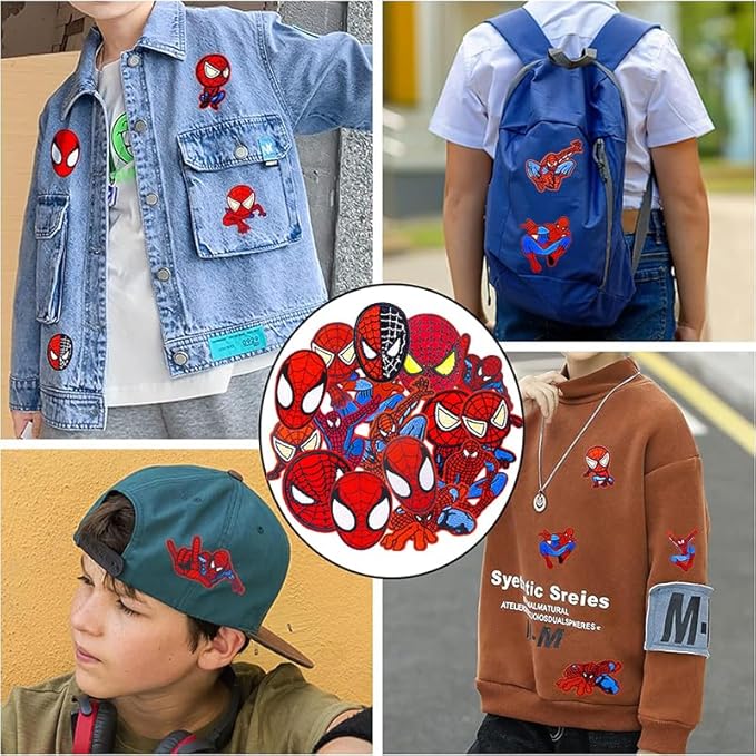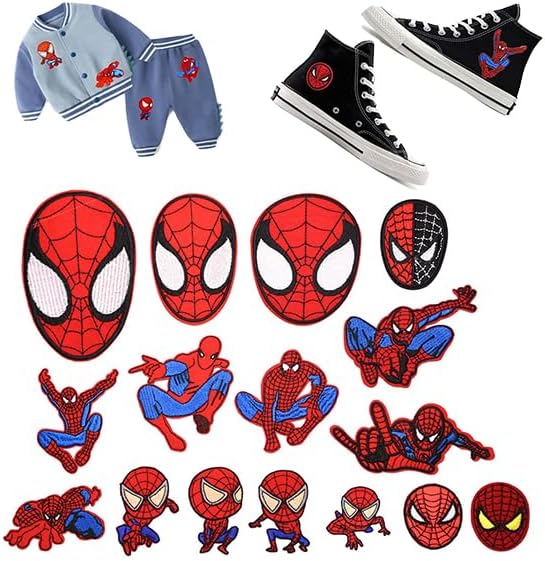 sylbx Lot de 16 Patch Thermocollant,Ecusson Thermocollant enfant,Ecusson a Coudre Vetement,Patch d'araignée,Autocollants patch en jean,Convient aux textiles,vestes,sacs à dos,jeans