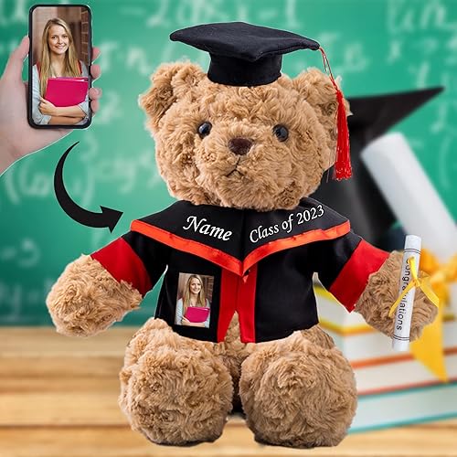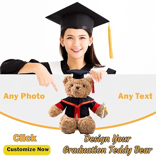 MeterBear Cadeau de Fin D'études pour Elle Nounours Personnalisé avec Texte+Photo, Nounours Personnalisé comme Un Cadeau de Fin D'études pour Le Lycée/Université (Marron-26cm-Texte+Photo)