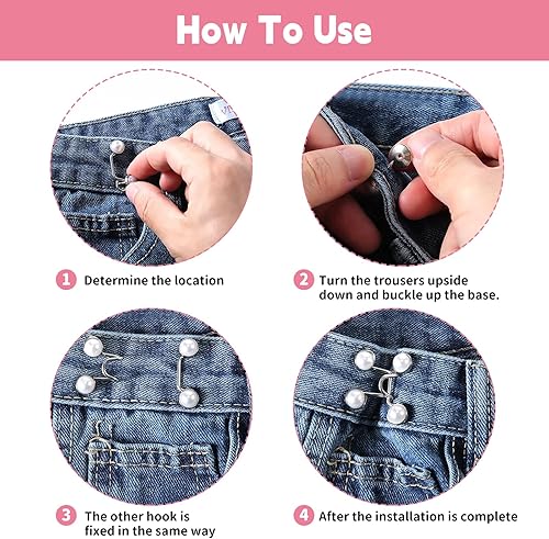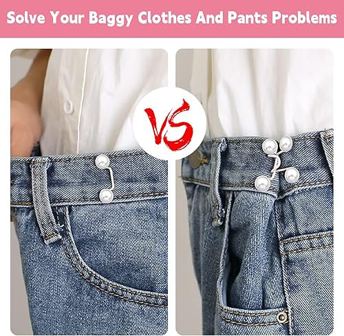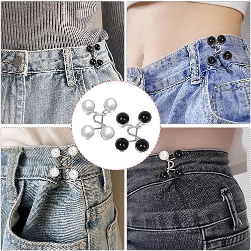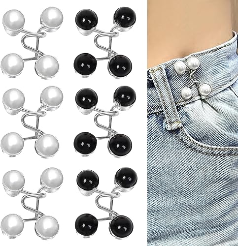 Simsky 6 Piecès Bouton de Jeans, épingles à Boutons pour Jeans, Couture Accessoires, Bouton de Jean Clipsable, Pearl Jean Épingles à Boutons Ensembles de Boucle de Taille Réglable sans Clous
