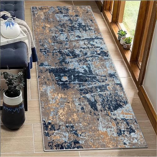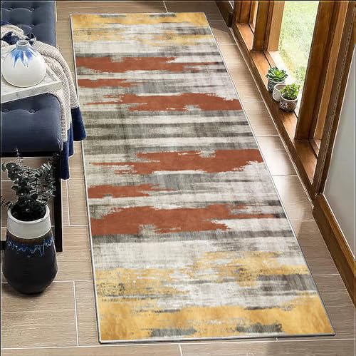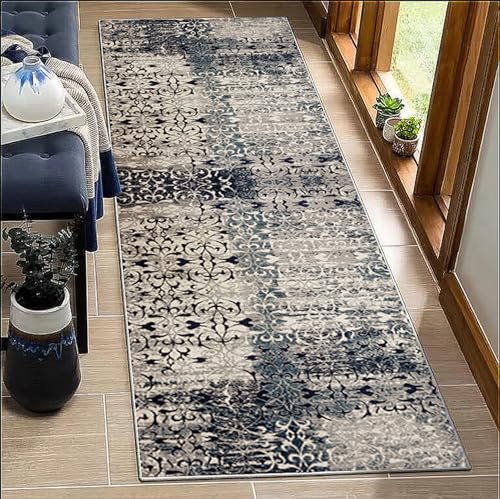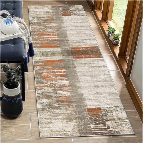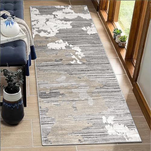 BORKOY Tapis de Passage Couloir 80x150cm Motifs Contemporains Gris Antidérapant Lavable - Tapis de Cuisine Long Absorbant pour Devant Évier, Salon, Bureau Protection Plancher Bois