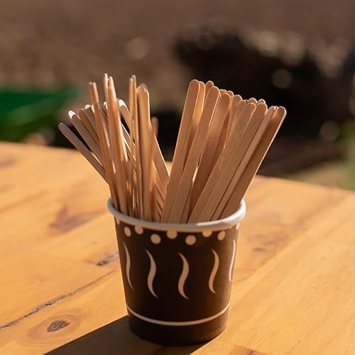 100 Palettes Café emballées individuellement - 11cm - Bâtonnets Café - Cuillères Café - Bâtons en Bois - Cuillères en Bois - Cuillères Jetables - Bâtons Bois Artisanat - Cuillères Café