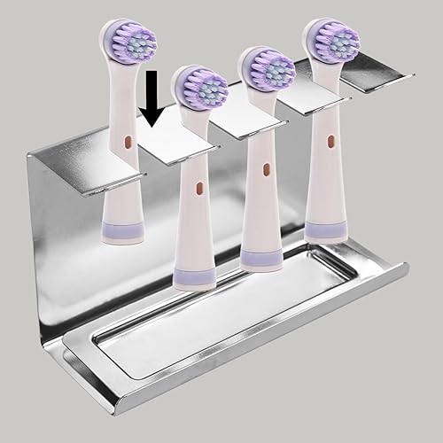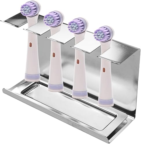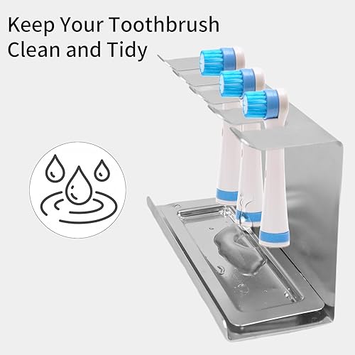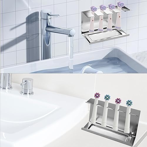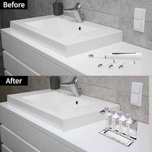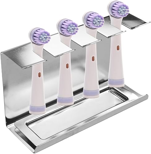 AIVORO Support Brossettes Électrique, Porte Brosse à Dents Mural Électrique, Support Tête de Brosse à Dent Électrique Convient pour 4 Têtes de Brosse à Dents, sans PerçAge, Auto-Adhésif,Argenté