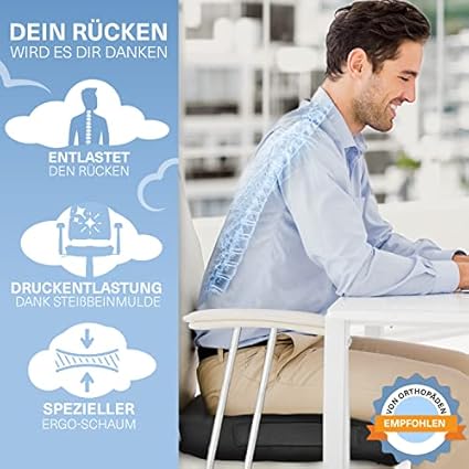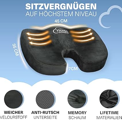 Hoxx ® Wolkenthron Coussin d'assise orthopédique - Coussin d'assise ergonomique en gel pour chaise de bureau et voiture, soulagement du coccyx - Favorise une posture idéale - Anneau d'assise pour plus