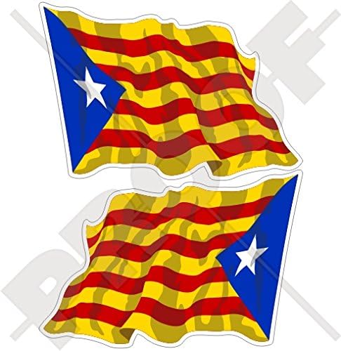 Catalogne Indépendance Catalane Agitant Le Drapeau Bleu Espagne Estelada Blava Espagnol, 75mm Vinyle Autocollants, x2 Stickers