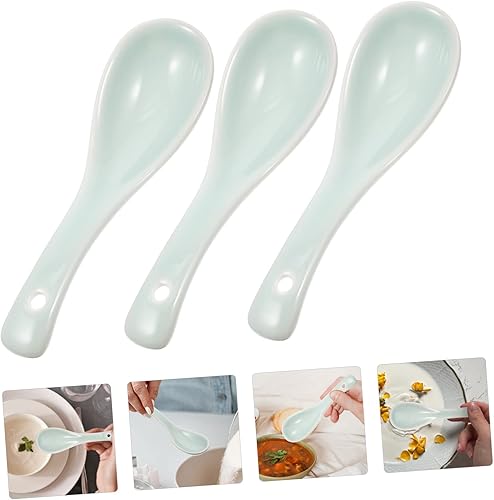 NAMOARLY 3Pièces Cuillère à Soupe Céramique Ustensiles de Table pour et Porridge Couleurs Aléatoires