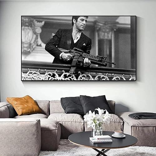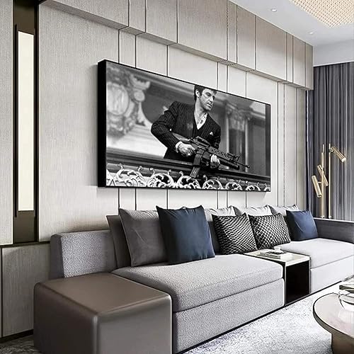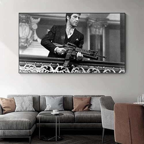 ENQIAOZHANG Impression sur toile Affiche 60x90cm Film Tony Montana Stampa in bianco e nero Stampa fotografica moderna familiare Camera da letto Decor poster Senza Cornice