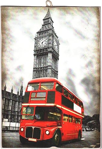 Kustom Art Tableau Tableau Style Vintage Série Londres (London) Red Bus et Big Ben Impression sur Bois 25 x 18 cm