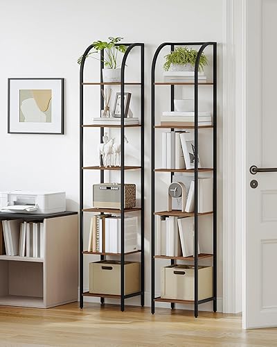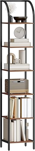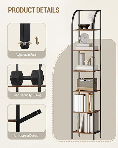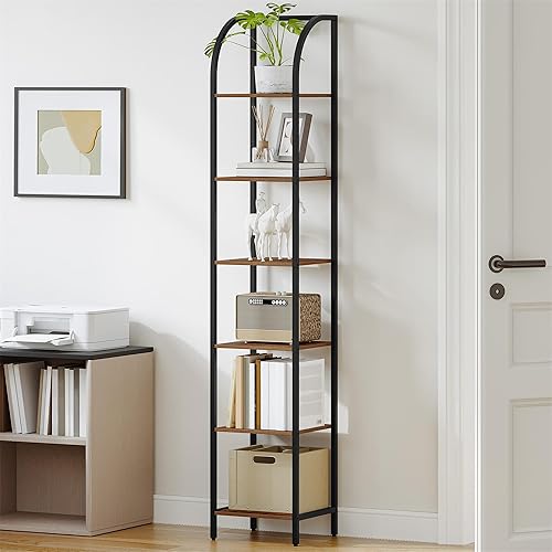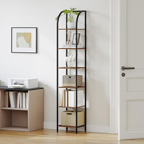 Hzuaneri Étagères Étroites à 6 Niveaux, Bibliothèque Verticale, Meuble de Rangement, Étagère Ouverte, Cadre Métallique, Convient pour Bureau, Salon, Chambre, Cuisine, Marron Rustique BC56001B