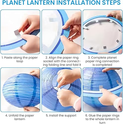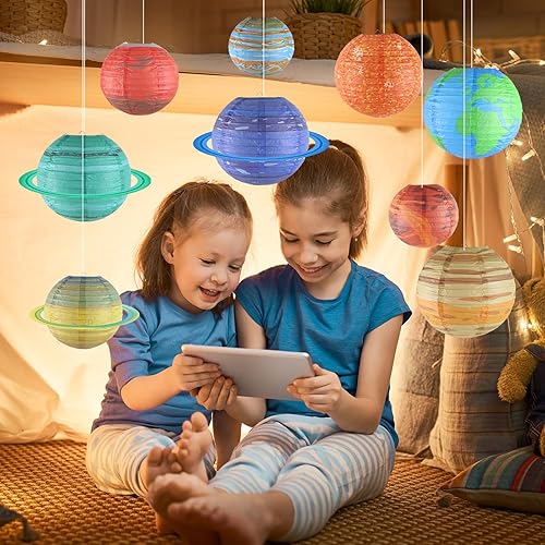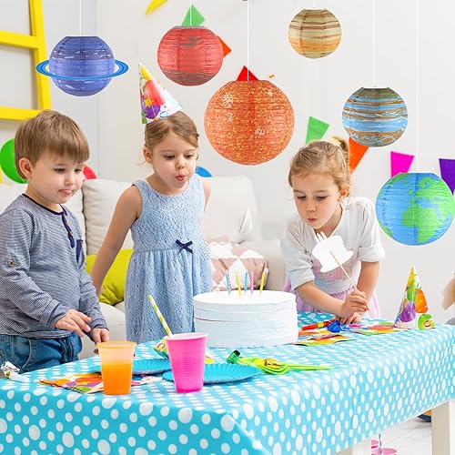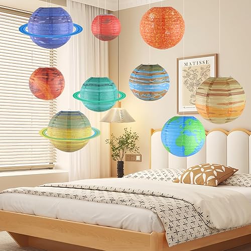 Lot de 9 lanternes en papier avec système solaire Planètes : 25 cm Décoration Planètes Suspendues Lanternes en papier pour enfants Lanternes en papier Lampions Décoration pour thème spatial
