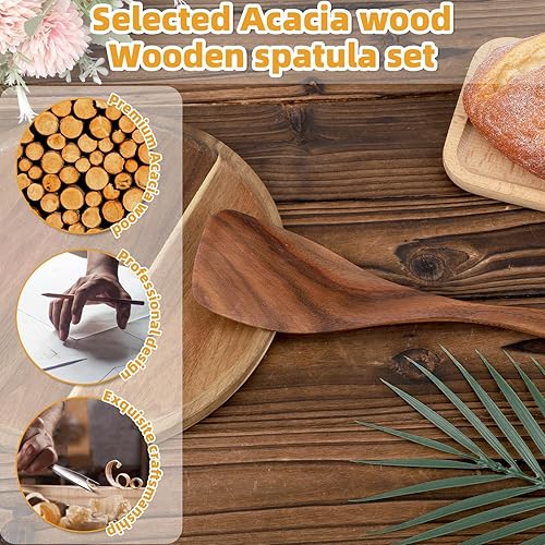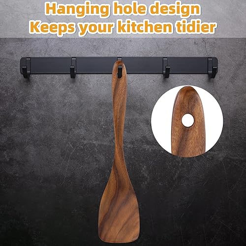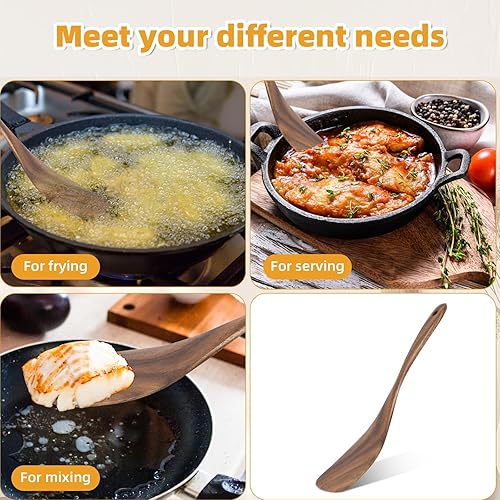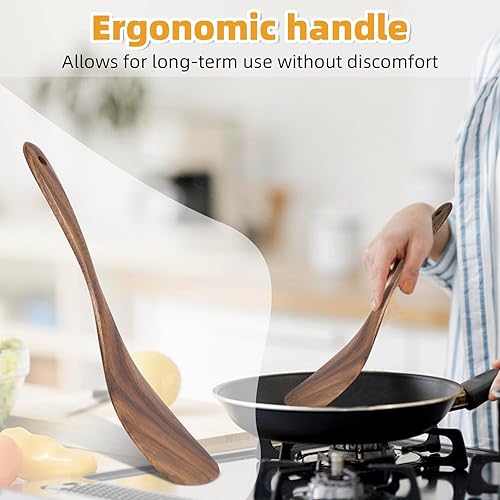 Gosknor Spatule en Bois pour la Cuisine, Spatule en Bois ne Blesse Pas la Casserole Ustensiles de Cuisine à Long Manche pour les Poêles Antiadhésives Frire Remuer Cuisiner