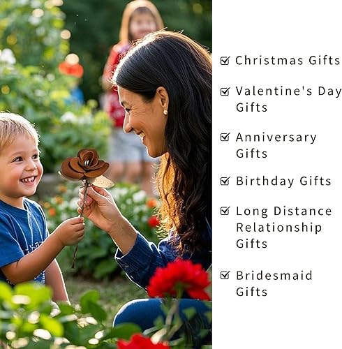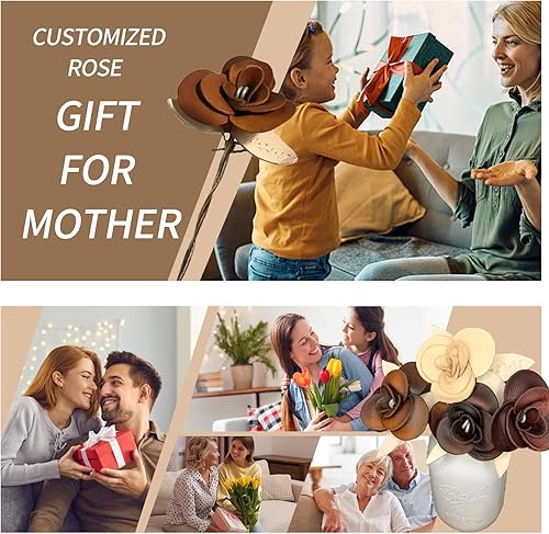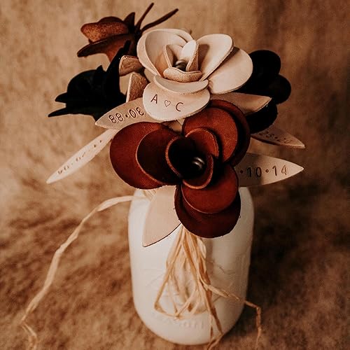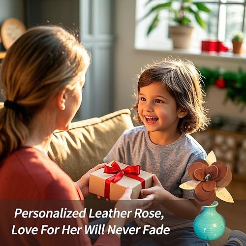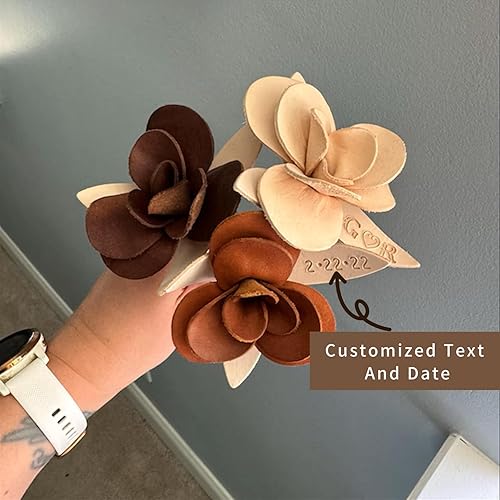 UIDMEN Rose en cuir personnalisée avec date ou initiale, rose en cuir pour elle/lui, 3ème année pour maman, cadeau de fleurs éternelles pour petite amie, sœur, épouse, grand-mère