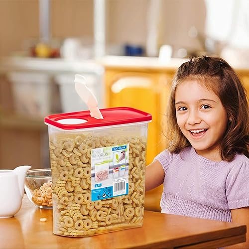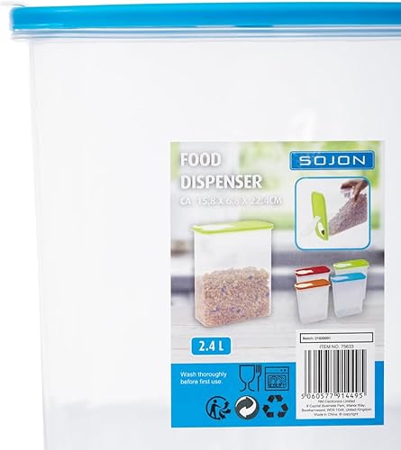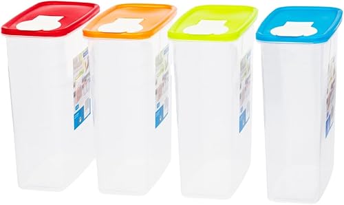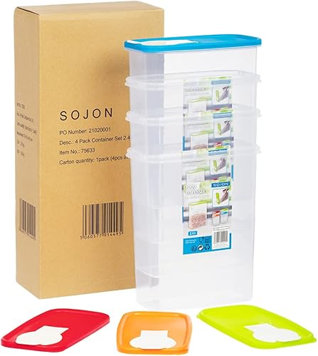 Sojon Lot de 4 boîtes de Rangement en Plastique pour Aliments secs 2,4 l avec Couvercle hermétique, idéal pour céréales, Riz, pâtes et Bien Plus Encore