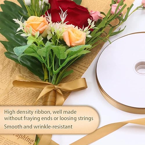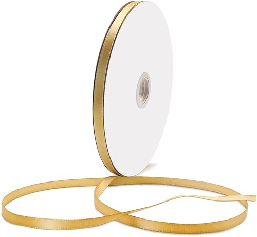 Ruban de Satin Doré Simple Face, 6 mm x 90 m Ruban Satin Polyester Noeud et Emballage Cadeau, Ruban Décoratif Mariage, pour Baptême Anniversaire Célébration Arts Artisanat