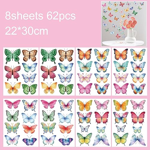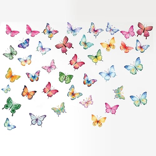 Lot de 62 autocollants muraux amovibles en forme de papillon aquarelle pour décoration de chambre, chambre d'enfant, fête