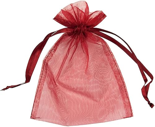 Lot de 50 sacs en organza pour dragées de mariage, fête, bijoux, pochettes en maille avec cordon de serrage (10 cm x 15 cm, bordeaux)