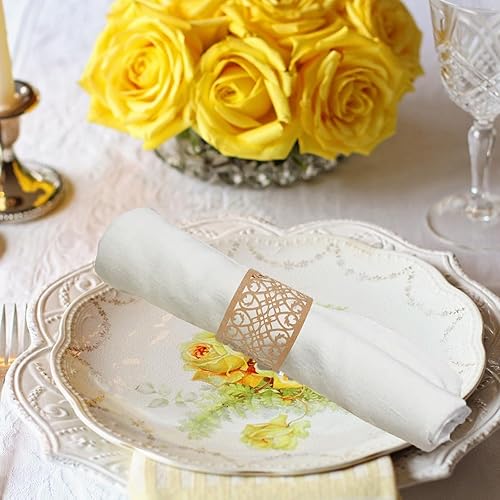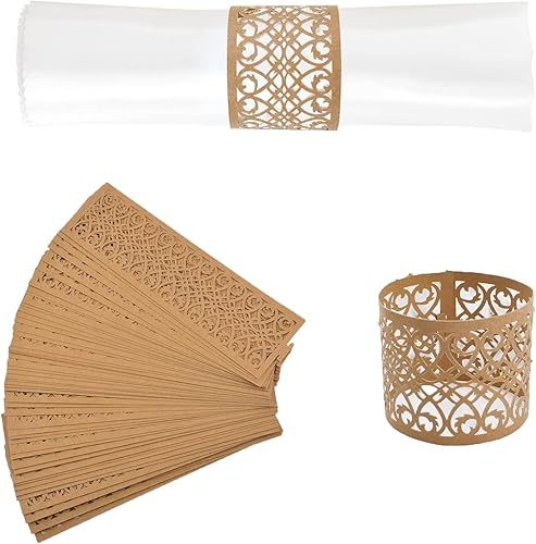 Lot de 50 Boucles de Serviette Creuses en Papier Kraft Rond de Serviette de Table Personnalisé Anneaux de Serviette Mariage,pour Mariage,Fête d'anniversaire,Décoration de Table,Centre de Table
