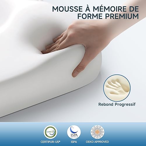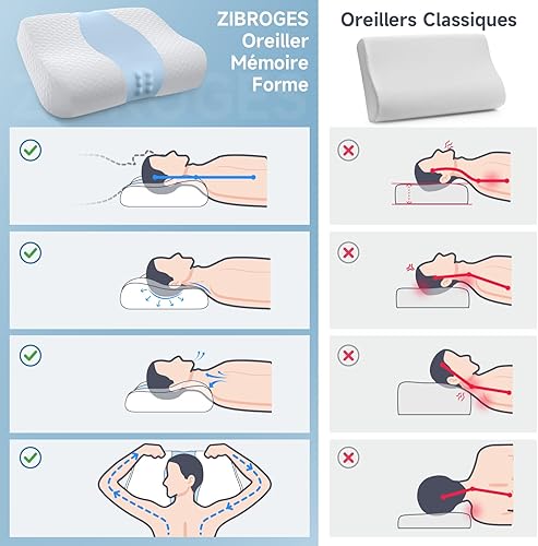 Zibroges Oreiller Cervical Mémoire Forme 60x40cm - Oreiller Memory Foam Conception Confort du Cou Oreiller de Sommeil pour Dormeurs sur Le Côté/Dos/Ventre, Housse de Oreillers Lavable