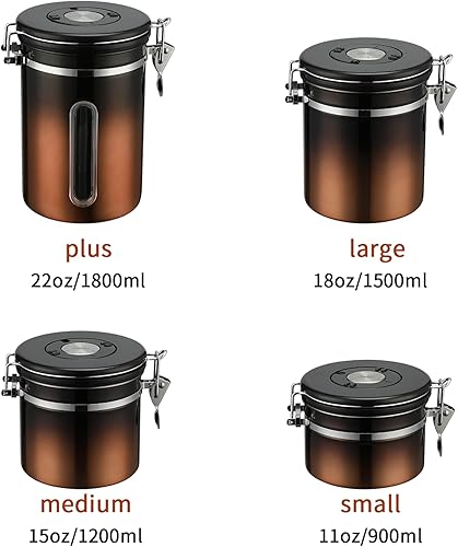 Home Bay Boîte à café hermétique - Bocal à café en acier inoxydable avec couvercle de suivi de la date - dégradé noir à cuivre (1200 ml) (1500 ml)