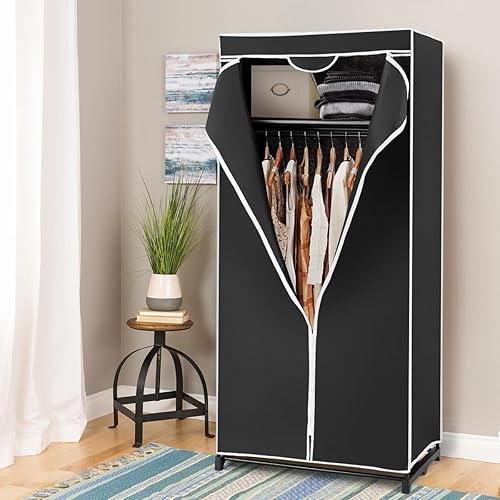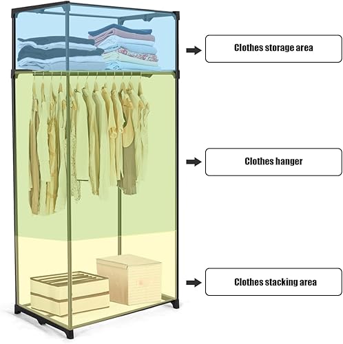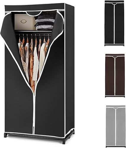 Armoire en tissu pliable et peu encombrante avec housse anti-poussière, armoire de chambre, armoire verrouillable avec fermeture éclair pour chambre à coucher, salle de bain, salon, 74 x 50 x 172 cm