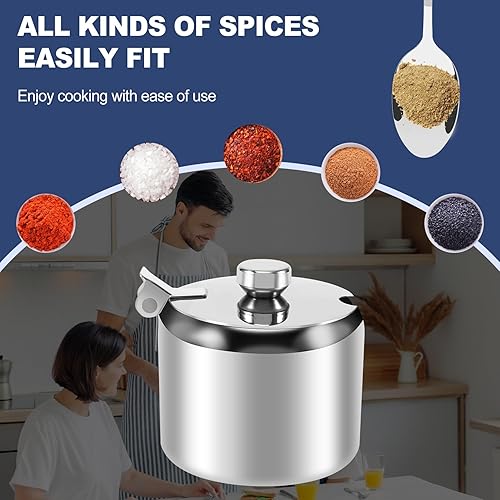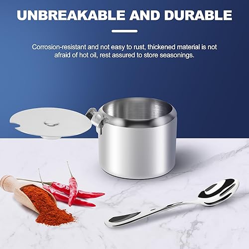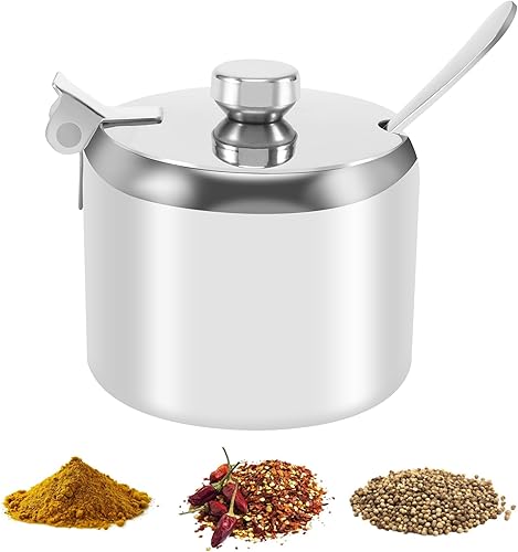 Roundsky Lot de pots à épices en acier inoxydable de qualité supérieure - Avec couvercle - Incassables - Passent au lave-vaisselle - Vaisselle de rangement pour, l'hôtel, le café, le buffet