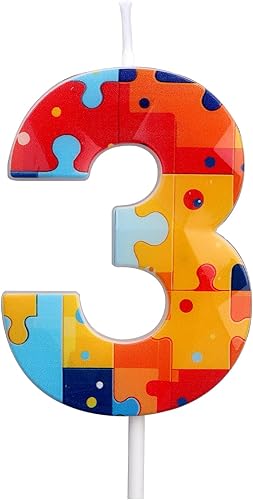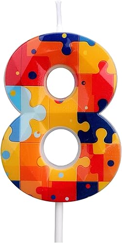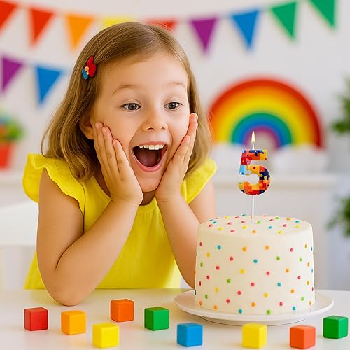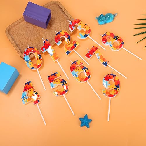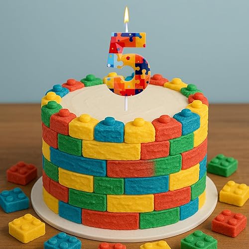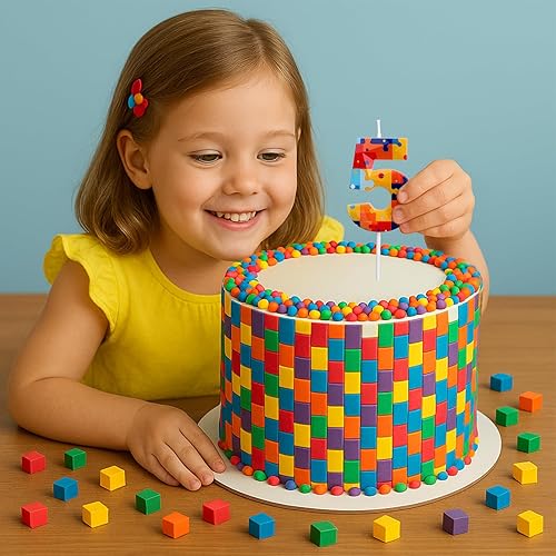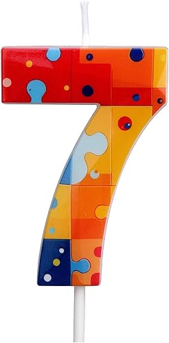 Bloc Construction Puzzle Bougies Gâteau d'Anniversaire à Chiffres, Multicolore Puzzle Blocs Topper pour Gâteau Bougies d'Anniversaire Chiffres pour Enfants Garçons Fournitures Fête (Numéro 7)