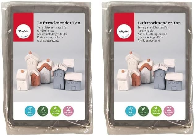 Rayher Terre glaise durcissant à l'air, 1 kg de pâte à modeler, gris, 3450125