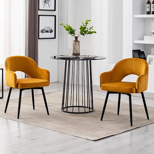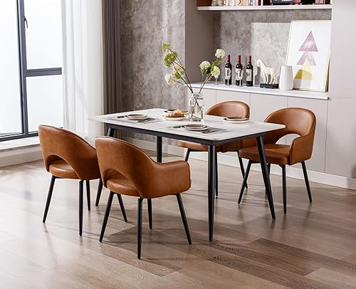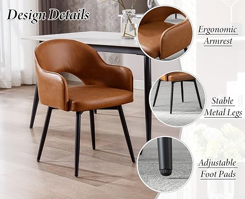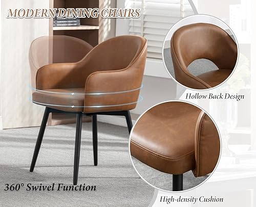 Ya-Home Lot de 2 Chaise de Salle à Manger en Cuir PU Chaise de Cusine Pivotante avec Accoudoirs Chaise à Manger pour Cuisine/Salle de Séjour, Marron