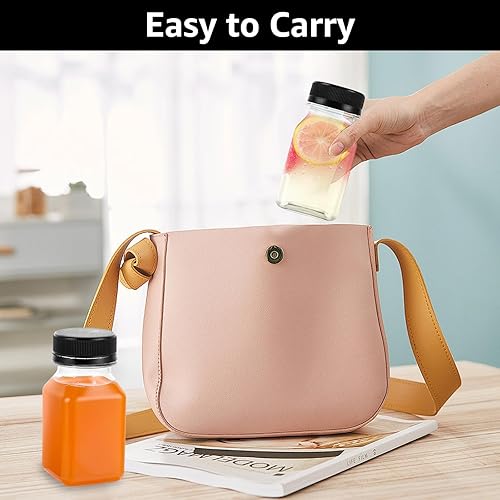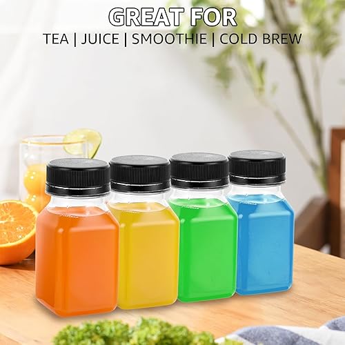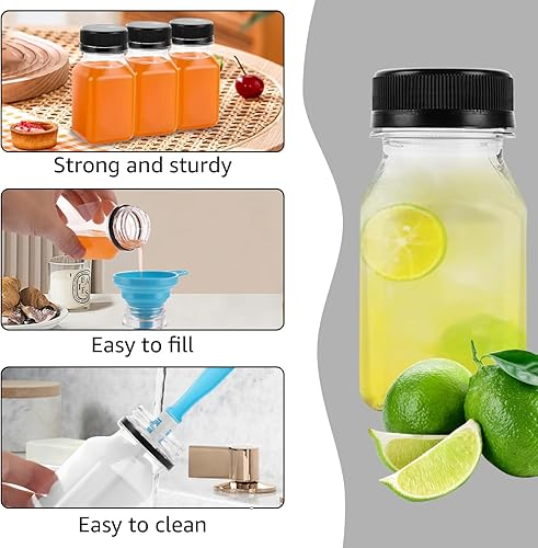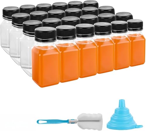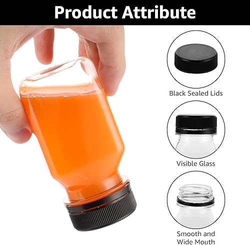 DAJAVE Lot de 24 bouteilles à liqueur, en plastique, à remplir, réutilisables, transparentes, avec couvercles anti-fuite, petites bouteilles avec couvercles anti-fuite, avec couvercles pour jus
