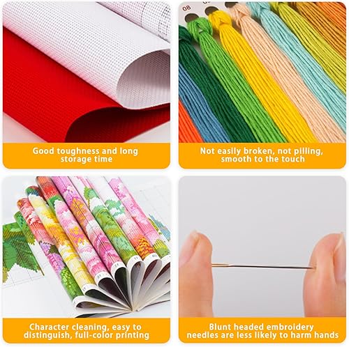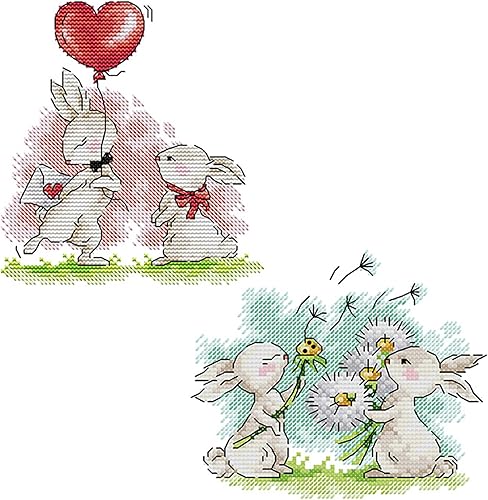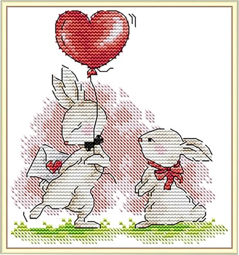 BEAHING Kits de Point de Croix Kit de Broderie à thème de Lapin DIY avec Aiguille émoussée