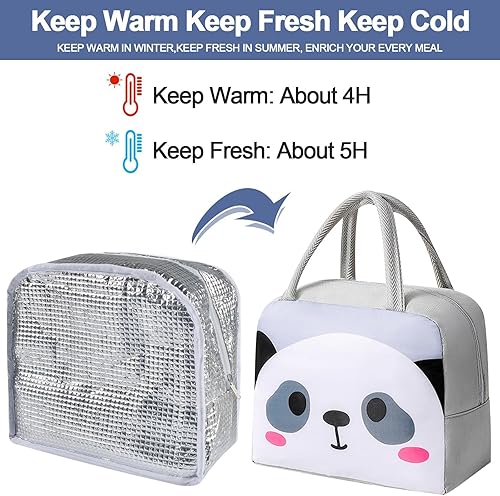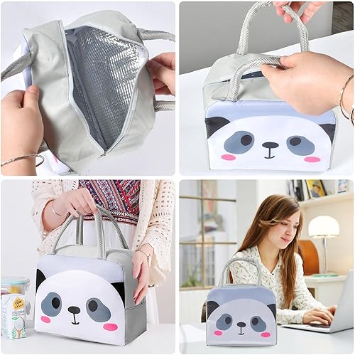 AUEJACKY Sac à lunch, sac à lunch, portable, sac isotherme pour déjeuner, petit sac à lunch, sac isotherme mignon visage de panda, sac isotherme pour la nourriture, sac à déjeuner générique