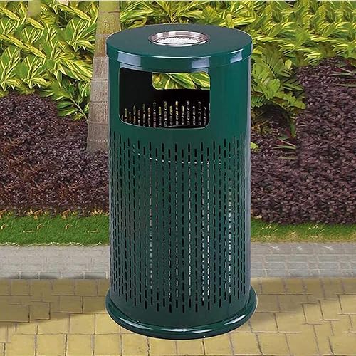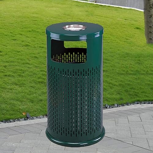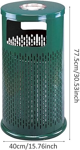 LSHTAR Poubelle cylindrique intérieure extérieure en acier inoxydable avec cendrier, poubelle de conception creuse pour centre commercial d'hôtel