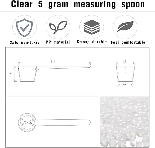 WKRTDY Ensemble de 4 Cuillères Mesure Transparentes et Pratiques pour La Cuisine ou Le Thé - Idéales pour la Chrononutrition et Le Café - Cuillère Doseuse en Plastique de 5g