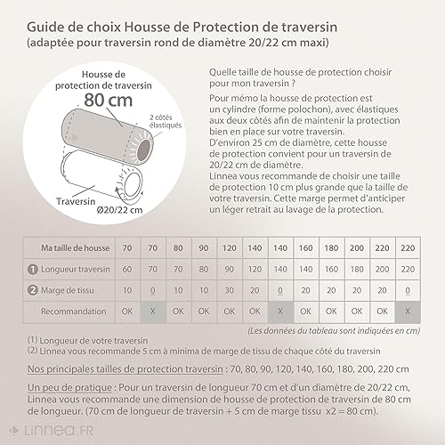 Linnea Housse de Protection de traversin imperméable 80 cm Arnon Molleton 100% Coton contrecollé polyuréthane