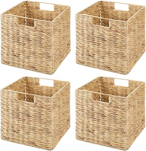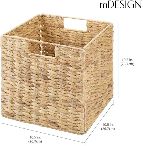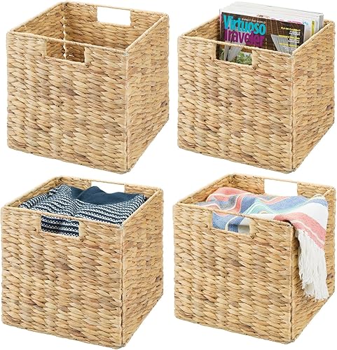 mDesign Lot de 4 paniers de rangement pliables en jacinthe d'eau - Panier de rangement idéal pour ranger des vêtements, des jouets ou des magazines - Motif osier - Naturel