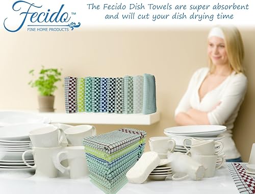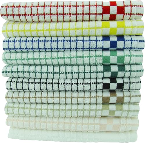 Fecido Torchons de cuisine classiques - très résistants - super absorbants - 100 % coton - serviettes à vaisselle de qualité professionnelle - Torchons de fabrication européenne - paquet de dix, Multi Couleur