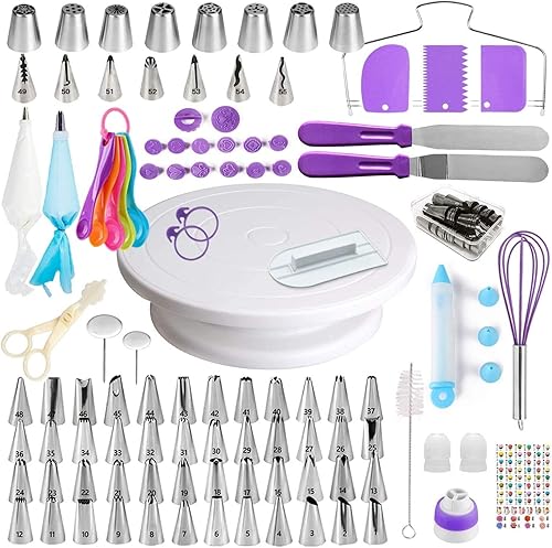 YIGeyi 137 Pcs Kit de pâtisserie Plateau Tournant de Gâteau DIY Ustensiles Kits Décoration pour Glaçage, Déco, Poches, Douilles ect (137pcs, Violet)