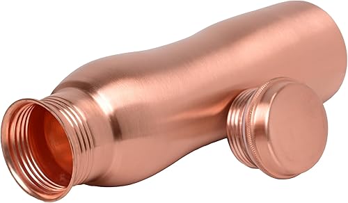 Bouteille d'eau en cuivre pur de forme incurvée pour bienfaits ayurvédiques sans joints et anti-fuite (cuivre, 750 ml)