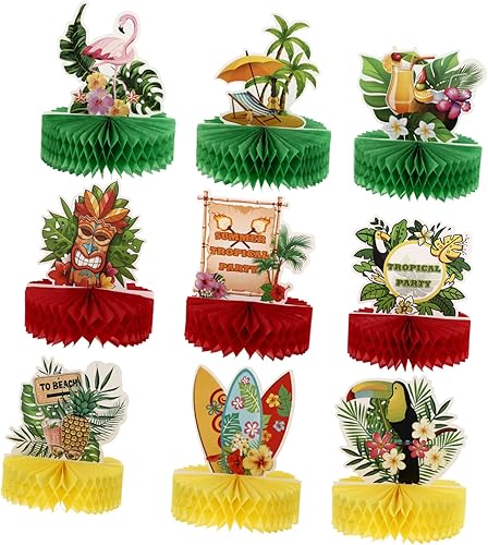 Milisten 9 Pièces ornement flamant rose pièces maîtresses décoration luau tropical Plage centres de table en nid d'abeille hawaii centres de table hawaïens ornement de fête hawaï Papier