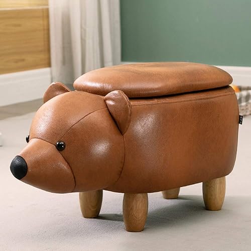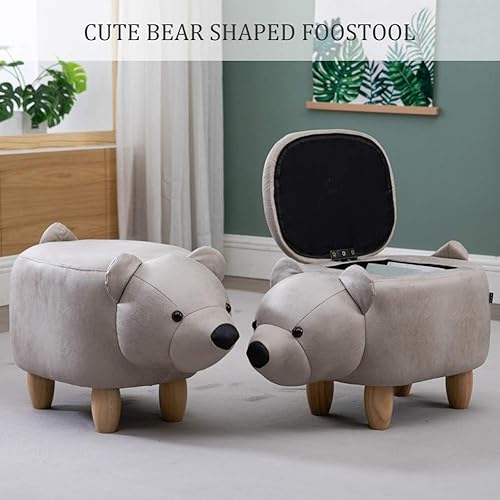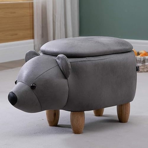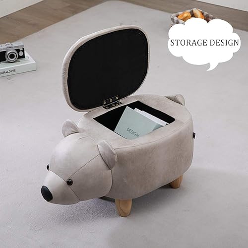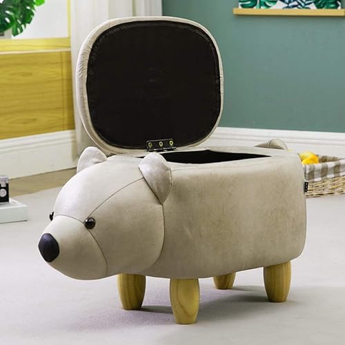 XBCDX Tabouret Ottoman de Rangement pour Animaux, Pouf en Forme d'ours siège Ottoman rembourré pour Enfants Adultes, Tabouret en Bois Repose-Pieds Banc de Chaussures pour Couloir Chambre Salon mar
