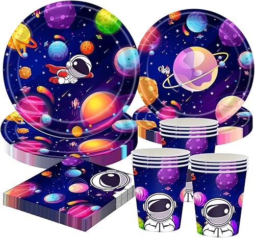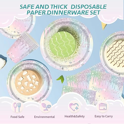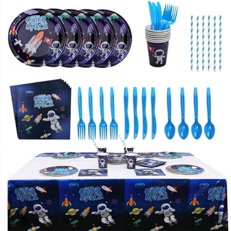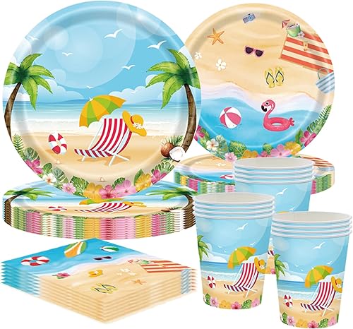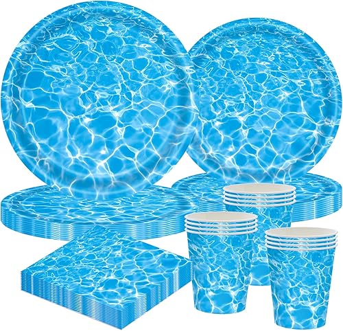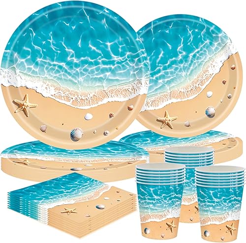 CANCJ Lot de 50 pièces de vaisselle de fête sur le thème de la mer pour 10 invités - Assiettes en carton de 22,4 cm - Tasses - Serviettes - Vaisselle jetable pour fête sous-marine - Pour garçons et