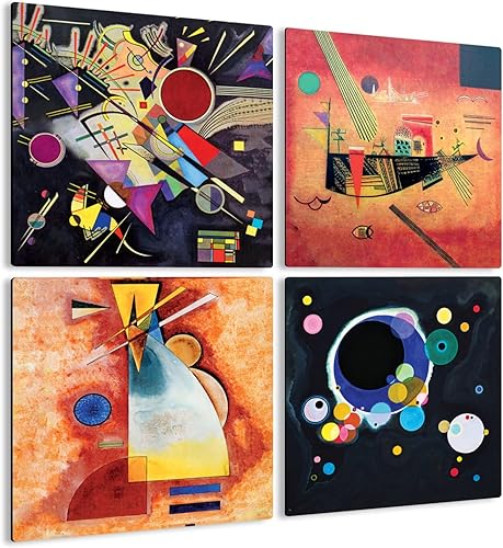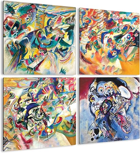 Giallobus - 4 carrés multi-panneaux - Vassily Kandinsky - Les plus belles œuvres de Kandinsky - Collection 1 - Bois MDF - 29,7x29,7 - x 4 pièces