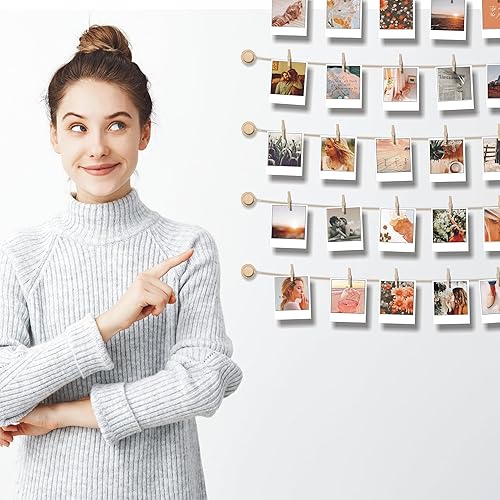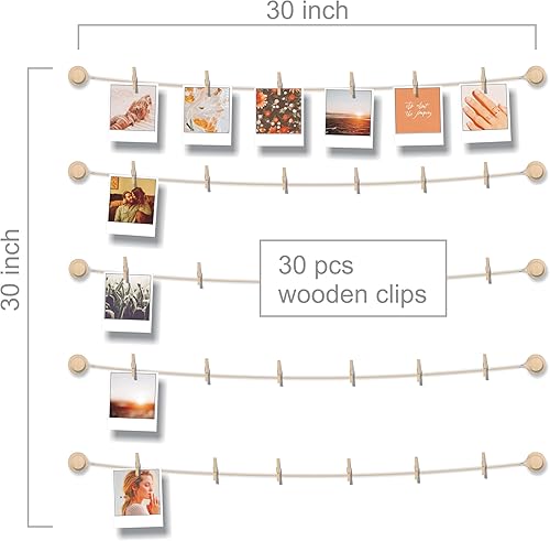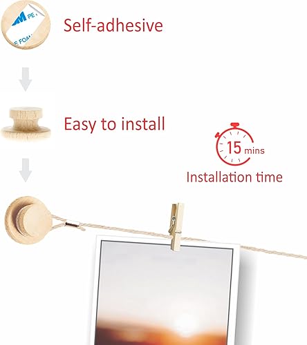 BIZYAC Photo Display – Corde à suspendre instantanément avec clips – Autocollant 3M – Pas de trous muraux – 76,2 x 76,2 cm