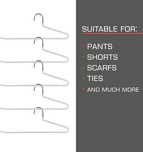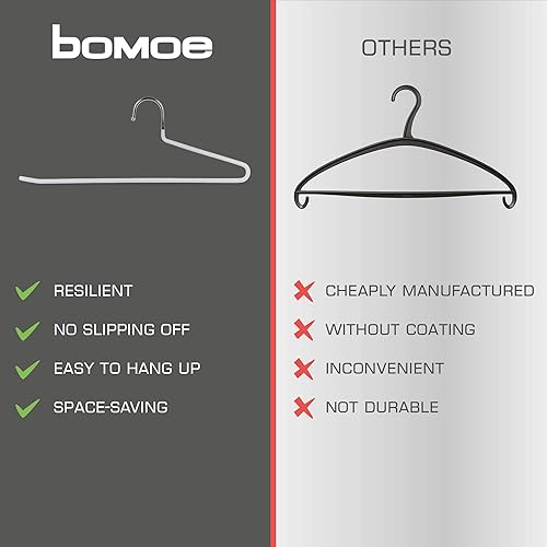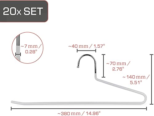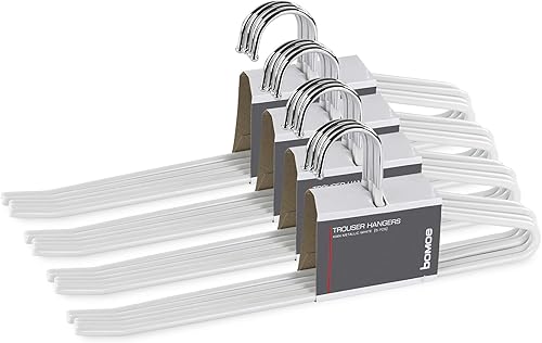 BOMOE Cintre Metal Lot de 20 cintres Blanc - Cintres Pantalon Anti-Glisse avec Barre de Pantalon Anti-Glisse et Design Ouvert pour Un accrochement Facile - Cintres Metal Kian