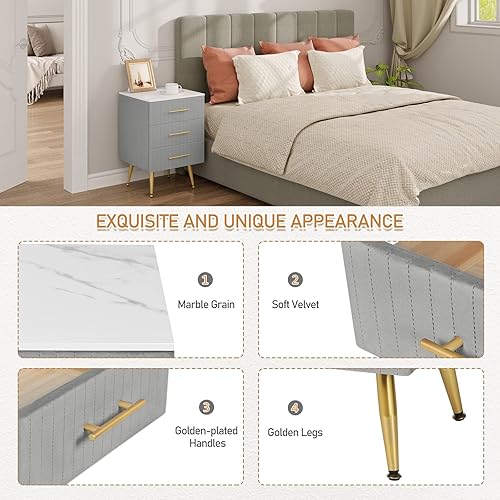 WOLTU Table de Chevet avec 2 Tiroirs de Rangement en Velours Table de Nuit Meuble pour Chambre à Coucher Salon en MDF, Installation Facile 40,5x41x51cm, Rose TS134rs