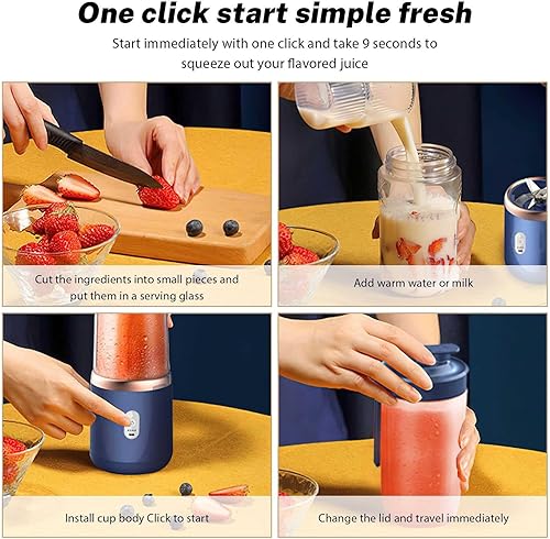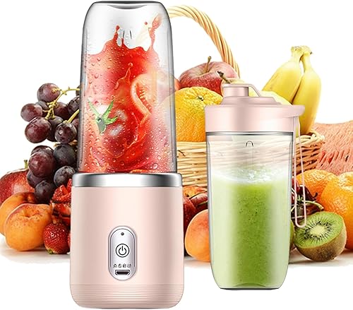 Mini Mixeur Blender portable, Rechargeable Usb, 400ml, pour Shakes et Smoothies avec 6 lames et Batterie Rechargeable de 1500 mAh pour sport, cuisine, salle de sport, voyage (Rose)