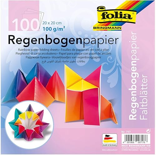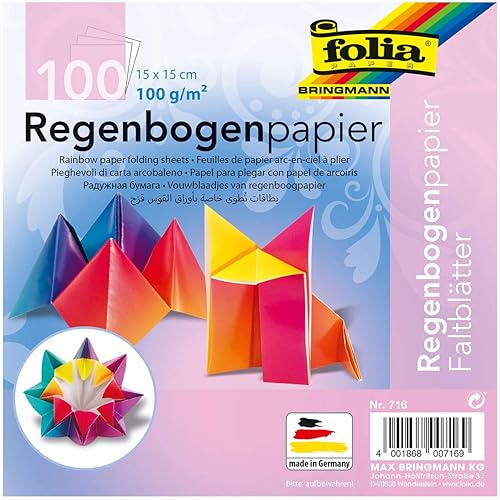 folia 716 Lot de 100 Feuilles de Papier Arc-en-Ciel 100 g/m² 15 x 15 cm Couleurs Assorties Idéal pour Les Figurines Pliantes et Autres idées créatives
