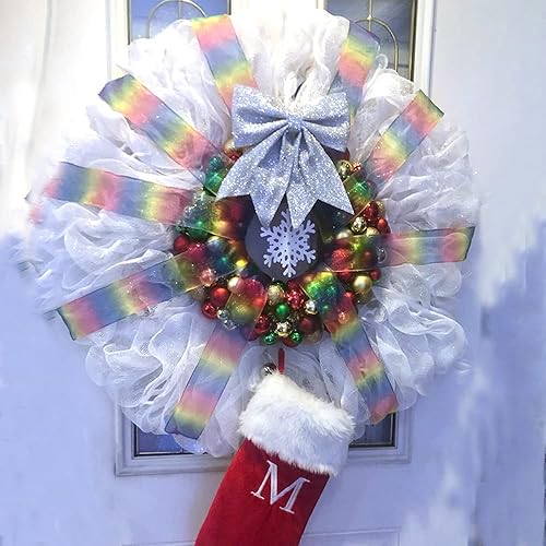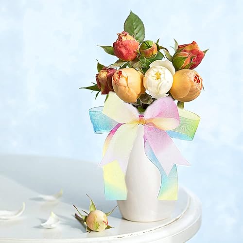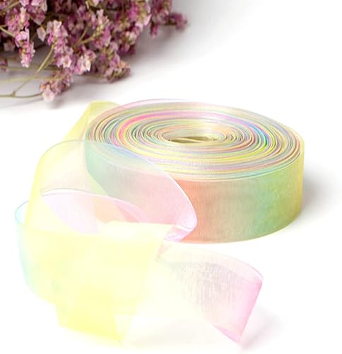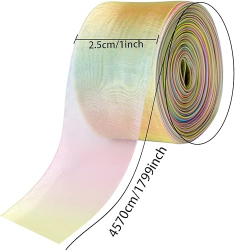 WEIWUXIAN Ruban Arc-en-Ciel, 50 Yard, 25mm, Ruban Organza, Matériel Organza Ruban, Ruban de Noël large pour Emballage Cadeau, Mariage, Vacances, Anniversaire, Fête, Décoration de Bricolage