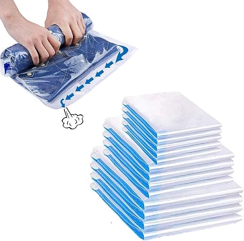 Lacmisc Lot de 13 Sac de Voyage sous Vide 3 Tailles Sacs Compression Sac de Rangement sous Vide Voyage Réutilisables Housse de Rangement