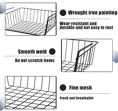 Lamppdcor sous Les paniers de Rangement de l'étagère - Paniers Suspendus en métal pour Garde-Robe, Cuisine, Salle Bain, Bureau